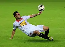 Negredo made his debut for Sevilla on 30 August 2009, coming as a substitute in the 55th minute of a 2–0 away loss to Valencia.[21] Two weeks later he scored his first goal, at CA Osasuna in a 2–0 win.[22]