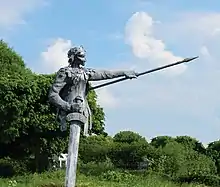 Statue in Tamworth of Æthelflæd with her nephew Æthelstan, erected in 1913 to commemorate the millennium of her fortification of the town.[47]