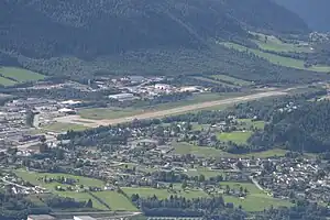 Ørsta–Volda Airport is situated in Hovebygda in Ørsta, Norway. Its catchment area covers the southern parts of Sunnmøre and parts of Nordfjord.[20] It has a reference elevation of 74 meters (243 ft) above mean sea level.[1][20] The asphalt runway physically measures 1,110 by 30 meters (3,642 by 98 ft) and is aligned 06/24. It has a takeoff run available (TORA) of 930 meters (3,050 ft) on runway 06 and 1,000 meters (3,300 ft) on runway 24, and a landing distance available (LDA) of 870 meters (2,850 ft). The airport is equipped with category 4 fire and rescue service.[1] There are 16 Avinor employees at the airport, consisting of five in the aerodrome flight information service and nine in the ground services.[21]