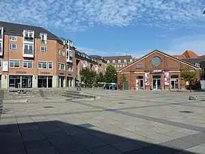 Østerfælled Torv (lit. "Østerfælled Market") is a mixed-use development surrounding a public space by the same name in the former grounds of Østerfælled Barracks in the Østerbro district of Copenhagen, Denmark. It is a result of a redevelopment of the site in the 1990s which preserved many of the old buildings, now used for retail and commercial space as well as cultural facilities, combining them with new apartment buildings.