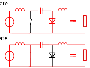 The Ćuk converter[1] (Serbo-Croatian: [tɕûːk], English: /ˈk/) is a type of buck-boost converter with low ripple current.[2] A Ćuk converter can be seen as a combination of boost converter and buck converter, having one switching device and a mutual capacitor, to couple the energy.