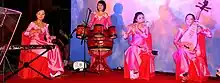 The đàn tỳ bà (Vietnamese: [ɗàːn tì ɓàː], Chữ Nôm: 彈琵琶) is a Vietnamese traditional plucked string instrument derived form the Chinese pipa,[1] That first gained popularity in China before spreading throughout East Asia, eventually reaching Vietnam sometime during the Trần dynasty.