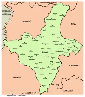 Šabac (Serbian Cyrillic: Шабац, pronounced [ʃâbat͡s]) is a city and the administrative centre of the Mačva District in western Serbia. The traditional centre of the fertile Mačva region, Šabac is located on the right banks of the river Sava. According to the 2011 census, the city proper has population of 51,163, while its administrative area comprises 105,432 inhabitants.