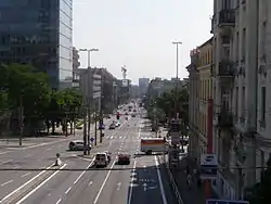 The YMCA building (formerly YMCA theater and sometimes Dukla), dating to 1921,[4] can be found here. Nearby stands a building that has been under construction for some years, which was to be 34 floors high upon completion. As of April 2007, only 8 above-ground levels have been completed, and it remains today in this unfinished state.
