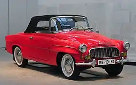 The Felicia was introduced in 1959 as a 2-door convertible, replacing the Škoda 450. Able to seat five persons, it was equipped with a folding hood and a plastic hardtop.[2] Styling is similar to that of the contemporary Škoda Octavia. The Felicia was offered only with a 1089 cc (37 kW) four-cylinder engine however a Felicia Super model was introduced in 1961 powered by a larger 1221 cc (40 kW) four-cylinder.[3]