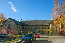 Tuskulėnai Manor is Žirmūnai's oldest extant architectural structure. The manor was built in 1825, following a design by Karol Podczaszyński in the neoclassical style. It consists of the principal building (the palace), an officina (storage house), and several adjacent buildings, including a small eclectic chapel of St. Theresa located about 100 metres south of the principal building.[50] The "Little White Manor", also known as the villa of Franciszek Walicki, was built in 1866 further south from the manor, acquired by Walicki in 1928, and reconstructed to serve as a summer residence.[20] All of these structures have been restored by 2009, and are a part of the 7.5-hectare Peace Park (Rimties parkas) that includes the Tuskulėnai Manor, hosting a museum of martyrology in Lithuania in the second half of the 20th century (a branch of the Lithuanian Museum of Genocide Victims), restored landscaping, as well as the columbarium.
