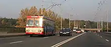 A trolleybus crossing the Valakupiai Bridge (2006)