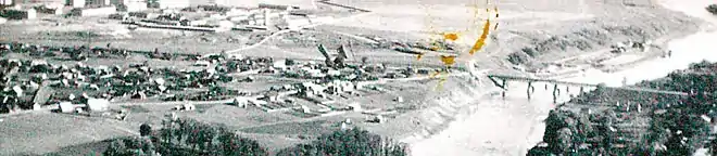 Žirmūnai's southernmost section, which lies on the bank of the River Neris opposite the Vilnius Castle Complex, was part of the settlement known as Žvejai; another part of that settlement is now located within the elderate of Šnipiškės. According to archaeological surveys from 2005, a fishing village may have been located here as early as the late 14th century, giving the area its name, literally, Fishermen; it was later settled by craftsmen and housed the Orthodox Church of St Barbara.[2] During the 16th century, the only glass factory in the Grand Duchy of Lithuania was located in the suburb of Žvejai.[14] In 1563, after the construction of the first bridge over the River Neris (at the approximate location of today's Mindaugas Bridge), the suburb of Žvejai became an integral part of the city of Vilnius.[14] During Tsarist rule in the 19th century, the name of Žvejai was superseded by that of Piramont, originating from the small estate of Piramont in the area (now Kalvarijų 1).[15] Piramontskij Alley can be seen in a 1904 map of Vilnius[16] where today's A. Juozapavičiaus Street in the elderate of Šnipiškės is located, close to the boundary of Žirmūnai. The usage of Piramont as a placename gradually became limited to the southern part of Žvejai.