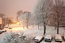 According to the 2001 census, Žirmūnai was the most populous elderate in Vilnius (47,410 residents, comprising 8.7% of Vilnius' total population[9]) and the third most populous in Lithuania after Šilainiai and Dainava, Kaunas. The population density was 8,317.5/km2. According to the census, there were 21,363 private households in the Žirmūnai elderate,[8] making for an average household size of about 2.2 persons. The population of Žirmūnai has been rapidly increasing, largely due to construction of residential buildings in the Šiaurės miestelis section of the elderate. A former elder of Žirmūnai estimated its 2002 population to be about 60,000 residents an increase of about 13,000 over the 2001 census figure. This rapid growth has placed a strain on city services.[10]