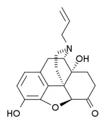 - ↑ Iijima I, Minamikawa J, Jacobson AE, Brossi A, Rice KC (April 1978). "Studies in the (+)-morphinan series. 5. Synthesis and biological properties of (+)-naloxone". Journal of Medicinal Chemistry. 21 (4): 398–400. doi:10.1021/jm00202a018. PMID 206698.