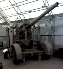 The TA's AA units were mobilised on 23 September 1938 during the Munich Crisis, with units manning their emergency positions within 24 hours, even though many did not yet have their full complement of men or equipment. The emergency lasted three weeks, and they were stood down on 13 October.[12] In February 1939, the existing AA defences came under the control of a new Anti-Aircraft Command. In June, as the international situation worsened, a partial mobilisation of the TA was begun in a process known as 'couverture', whereby each AA unit did a month's tour of duty in rotation to man selected AA gun and searchlight positions. On 24 August, ahead of the declaration of war, AA Command was fully mobilised at its war stations.[13] In the case of 226th (Caithness and Orkney) Bty, this was at the vital naval base of Scapa Flow, which consists of an anchorage virtually surrounded by the Orkney Islands. On the outbreak of war the battery's eight guns were the base's only land-based AA defence, though the Royal Navy estimated that at least 24 were required to protect the unarmed tankers and storeships, and the shore facilities.[14][15] 101st HAA Regiment, under the command of Bt-Col G.D.K. Murray,[8] formed part of 36th (Scottish) Anti-Aircraft Brigade in 3 AA Division.[9][16]