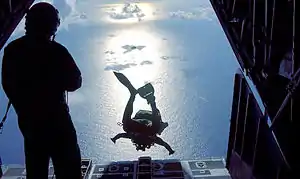 ![]() Night parachute jump of a 103d RS pararescue specialist | |