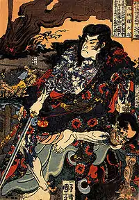 | 13 | 13 | Tiangu (天孤); Solitary Star (天孤星) | Lu Zhishen (鲁智深; 魯智深; Lǔ Zhìshēn; Lu Chih-shen) | "Flowery Monk" (花和尚) | Lu Da (魯達); Major Lu (魯提轄) | Infantry | Infantry leader | Garrison major | Weizhou (around present-day Pingliang, Gansu) | 3 | Monk's spade, Dagger | ![]() | Survives | |