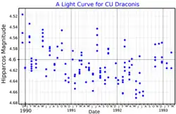 A light curve for CU Draconis, plotted from Hipparcos data[1]