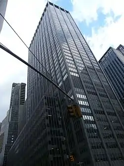 The building was developed by Uris Buildings Corporation[1] and was completed in 1964 and has 45 floors. Uris purchased the 68,000 square feet (6,300 m2) parcel on the west side of the Avenue of the Americas from the Astor trust for $9 million in January 1964 (equivalent to $65 million in 2022).[2] Shreve, Lamb & Harmon Associates designed the building, which is the 123rd tallest in New York City. JCPenney was the initial anchor tenant, occupying over 800,000 square feet (74,000 m2) of space across 33 floors after moving from 330–348 West 34th Street.[3] By 1974, the company occupied over 1.18 million square feet (110,000 m2) of the building.[4]