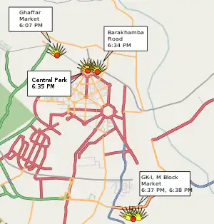 - ↑ "Chronology of blasts in Delhi". The Hindu. 7 September 2011. ISSN 0971-751X. Retrieved 12 September 2018.