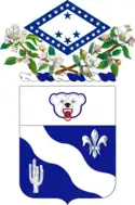 The 153d Infantry Regiment (First Arkansas)[1] is a United States infantry regiment, currently represented in the Arkansas Army National Guard by the 1st Battalion, 153rd Infantry, headquartered at Malvern, Arkansas, and 2nd Battalion, 153rd Infantry, headquartered at Searcy, Arkansas, elements of the 39th Brigade Combat Team.[2] The regiment was also represented by the 3rd Battalion, 153rd Infantry Regiment headquartered at Warren, Arkansas until that unit was deactivated on 5 September 2005. The regiment was activated as the 1st Arkansas Volunteer Infantry for the Spanish–American War, but did not deploy overseas. The regiment was activated for World War I, redesignated as the 153rd Infantry and shipped to France as a part of the 39th Division, but became a replacement division and personnel were reassigned to other AEF units. The regiment was activated for World War II and deployed to the Aleutian Islands, participating in the Aleutian Islands Campaign. Recently, elements of the regiment have participated in two deployments in support of Operation Iraqi Freedom, in 2004 and again in 2008.