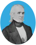 On the eighth ballot, the historian George Bancroft, a delegate from Massachusetts, proposed former Speaker of the House of Representatives James K. Polk as a compromise candidate. Polk, who had also served as Governor of Tennessee, had entered the convention in hopes of becoming the vice presidential nominee.[8] However, former President Andrew Jackson, who remained popular in the party, believed Polk was just the man to head the Democratic ticket.[8] Although a slaveholder himself, Polk never enunciated a slavery expansionist position with respect to Texas annexation, as had John C. Calhoun and the southern extremists.[12] Despite Polk's fervent advocacy for annexation, he had remained loyal to Van Buren throughout the Texas controversy, and anti-annexationist Van Burenites were willing to accept Polk, with reservations, having already recognized him as a suitable vice-presidential choice to have complemented a Van Buren ticket.[13][14] Southern Democrats benefited from the Tyler-Calhoun machinations in eliminating Martin Van Buren as a presidential candidate, and clearing the way for the pro-annexation nationalist Polk.[15] On the ninth ballot, Van Buren instructed his delegates to support Polk, beginning a stampede to Polk that ended with him winning the nomination unanimously.[8] Consequently, Polk became the first dark horse, or little-known, presidential nominee. Van Buren complied with his party's decision to unite under a pro-annexation candidate, and worked to win New York state for Polk.[16][17][18]