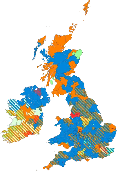 ![]() Colours denote the winning party—as shown in § Results | ||||||||||||||||||||||||||||||||||