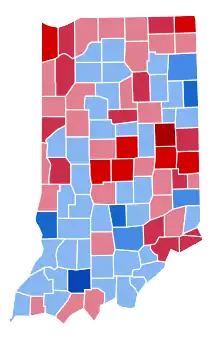 Indiana was won by the incumbent President Abraham Lincoln (R-Illinois), running with former Senator and Military Governor of Tennessee Andrew Johnson, with 53.60% of the popular vote, against the 4th Commanding General of the United States Army George B. McClellan (D–New Jersey), running with Representative George H. Pendleton, with 46.40% of the vote.[1]