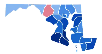 In this election, Maryland voted 39.72% more Democratic than the nation at-large.[1]