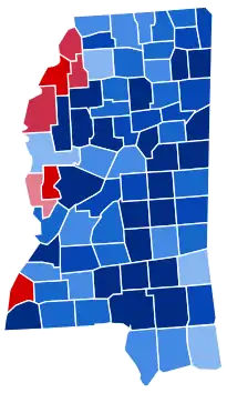 | Hinds | 2,201 | 69.45% | 956 | 30.17% | 12 | 0.38% | 1,245 | 39.29% | 3,169 |