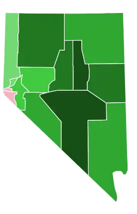 - ↑ Because Harrison and Weaver ran in the top two places in Nevada and in every county within the state, all margins given are Harrison vote minus Weaver vote and Harrison percentage minus Weaver percentage.