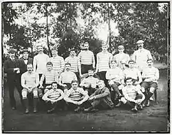 The squad had experience on their side in the shape of two veterans of the 1891 campaign, the captain Johnny Hammond and fellow forward Froude Hancock.[1] For the first time the squad also included a notable Irish contingent. Nine Irishmen were included in the touring party of 21. These included Thomas Crean, Larry Bulger, Jim Sealy, Andrew Clinch and Louis Magee, all of whom had just helped Ireland win the 1896 Home Nations Championship.[2]
