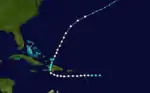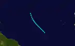 Late on September 1, the hurricane made landfall east of Jacmel, Haiti with winds of 80 mph (130 km/h). By 1800 UTC, it weakened to a tropical storm. The storm emerged into the Atlantic Ocean early on September 2, after weakening further. While passing just east of the Turks and Caicos Islands early on September 3, the storm re-strengthened and attained hurricane status again. Several hours later, it strengthened into a Category 2 hurricane and peaked with winds of 105 mph (169 km/h). After weakening to a Category 1 hurricane late on September 4, the storm passed northwest of Bermuda.[2] Hurricane-force winds caused considerable damage on the island.[9] At 1200 UTC on September 5, the hurricane became extratropical.[2]