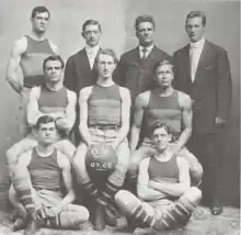 Considered the first great team in Georgetown men's basketball history,[3] the 1907-08 squad won its first five games before losing an exhibition game to Rutgers and suffering its only regular-season loss to a Pennsylvania team that went 23-4 for the year. The Hoyas finished the season with a record of 5-1 and won the mythical "Champions of the South" title for the year.[4][3]