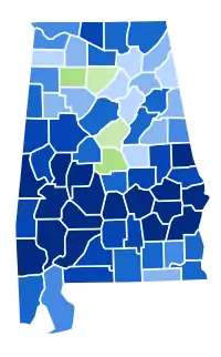 | Cullman | 1,230 | 42.49% | 264 | 9.12% | 1,374 | 47.46% | 27 | 0.93% | -144 | -4.97% | 2,895 |