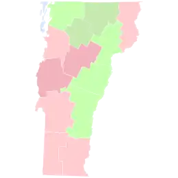 - ↑ Because Roosevelt finished ahead of Wilson in Vermont as a whole, all margins give are Taft minus Roosevelt unless stated in the total for the county in question.