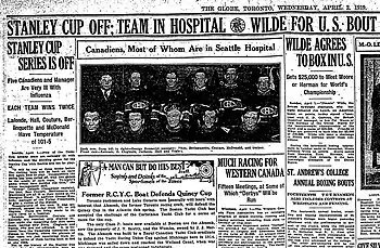 - ↑ "Remembering when the NHL cancelled the 1919 Cup Final due to flu pandemic". CBSSports.com. Retrieved March 13, 2018.
