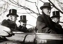 Warren G. Harding inauguration, March 4, 1921. Harding at right in back seat; Woodrow Wilson at left.