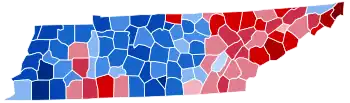 For over a century after the Civil War, Tennessee was divided according to political loyalties established in that war. Unionist regions covering almost all of East Tennessee, Kentucky Pennyroyal-allied Macon County, and the five West Tennessee Highland Rim counties of Carroll, Henderson, McNairy, Hardin and Wayne[1] voted Republican – generally by landslide margins – as they saw the Democratic Party as the “war party” who had forced them into a war they did not wish to fight.[2] Contrariwise, the rest of Middle and West Tennessee who had supported and driven the state's secession was equally fiercely Democratic as it associated the Republicans with Reconstruction.[3] After the disfranchisement of the state's African-American population by a poll tax was largely complete in the 1890s,[4] the Democratic Party was certain of winning statewide elections if united,[5] although unlike the Deep South Republicans would almost always gain thirty to forty percent of the statewide vote from mountain and Highland Rim support. When the Democratic Party was bitterly divided, the Republicans did win the governorship in 1910 and 1912, but did not gain at other levels.