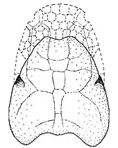 - ↑ Huene, F. 1931. Die fossilien Faehrten in Rhaet von Ischigualasto in Nordwest Argentinien. Paleob. 4 (2) Viena.