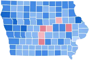 Iowa was won by Governor Franklin D. Roosevelt (D–New York), running with Speaker John Nance Garner, with 57.69% of the popular vote, against incumbent President Herbert Hoover (R–California), running with Vice President Charles Curtis, with 39.98% of the popular vote.[3][4] This is the only occasion since the Civil War when Cass County and Page County have voted for a Democratic Presidential candidate.[5][6]