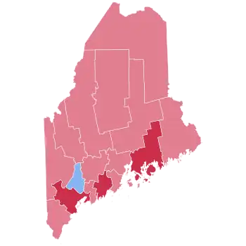 | Androscoggin | 9,838 | 40.05% | 14,441 | 58.79% | 251 | 1.02% | 17 | 0.07% | 15 | 0.06% | -4,603 | -18.74% | 24,562 |