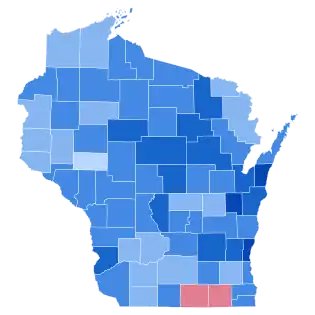 Roosevelt won every county except the two Yankee strongholds of Rock and Walworth,[14] which had been Calvin Coolidge's best counties when Robert M. La Follette, Sr. carried his home state in 1924. With his win in Wisconsin, Roosevelt became the first Democratic presidential candidate since Woodrow Wilson in 1912 to carry the state and the first since Franklin Pierce in 1852 to win the state with a majority of the popular vote (Wilson's win and Grover Cleveland's in 1892 were only pluralities).