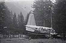 Flying over Switzerland, the aircraft flew over the pass at San Bernardino from the Moësa valley and would leave it via the northern pass. While flying over the pass, the plane encountered severe weather with heavy thunderstorms, torrential rain and drop in temperature.[1] The pilot decided to fly at a lower altitude. Due to clouds, the pilot was not able to exit the valley via the north exit. The pilot turned and attempted to exit the valley via the southern exit, but this also failed. While flying above San Bernardino they reported over the radio "I'm flying blind and looking for my position"; and later "we have to deal with heavy rain and dense fog". The plane flew in circles in the valley to find an exit for over 20 minutes and the pilot descended further to gain visibility. The pilot decided to make an emergency landing on hilly terrain just outside San Giacomo at 12:30. The landing failed and the plane broke in half.[2] The aircraft was crushed from front to back with only the tailpiece still intact, and the bottom part was heavily damaged.[3]