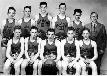 Melrose finished the regular season with a 190 record, having outscored their opponents 794417. The team had two close games at the beginning of the season, when their center Jim Thynne was out with broken ribs.[7] The other big test for the Shamrocks in the regular season was the game against Rathbun.[8] Melrose trailed 34–28 with 1:45 to play. They rallied and scored nine straight points to win the game.