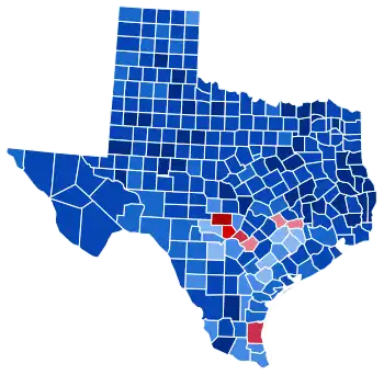 | Nueces | 9,740 | 75.84% | 3,065 | 23.87% | 37 | 0.29% | 6,675 | 51.98% | 12,842 |