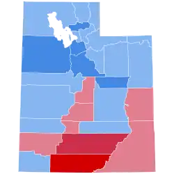 | Utah | 15,722 | 61.14% | 9,946 | 38.68% | 45 | 0.18% | 5,776 | 22.46% | 25,713 |