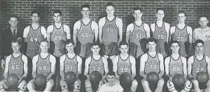 The 1945–46 Oklahoma A&M Aggies men's basketball team represented Oklahoma A&M College, now known as Oklahoma State University,[1] in NCAA competition in the 1945–46 season. The Aggies won their second consecutive NCAA championship, defeating the North Carolina Tar Heels by a score of 43–40 in the championship game of the NCAA Tournament. Oklahoma A&M was also retroactively named the national champion by the Helms Athletic Foundation and the Premo-Porretta Power Poll.[2][3]