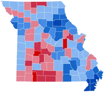 | Laclede | 3,221 | 45.92% | 3,773 | 53.78% | 9 | 0.13% | 12 | 0.17% | -552 | -7.87% | 7,015 |