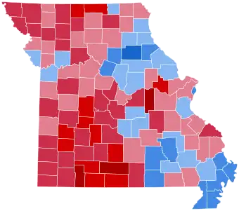 | Audrain | 4,767 | 41.26% | 6,775 | 58.64% | 12 | 0.10% | -2,008 | -17.38% | 11,554 |