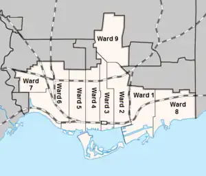Ward boundaries used in the 1953 election
