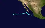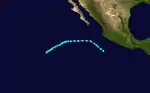 On June 17, an area of low pressure was identified on surface weather maps just off the coast of Guatemala.[5] The following day, the system was classified as a tropical storm approximately 210 mi (340 km) southwest of Guatemala City. Tracking generally northwest, the system acquired maximum sustained winds of 50 mph (85 km/h). On June 20–21, the storm moved parallel to the Mexican coastline before turning north on June 22. It was last noted offshore on this day, approximately 50 mi (85 km) south of Lázaro Cárdenas, Michoacán.[6]