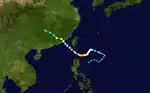 Carmen formed on September 9 north-northeast of the Philippines. It slowly moved north and the west over the course of three days, until it strengthened to a tropical storm. Carmen headed south briefly before heading east-northeast, when it began to strengthen even more. Carmen reached winds of 125 mph and a pressure of 960 mbar. But shortly thereafter, the strengthening stopped, and it slowly weakened. On September 15, Carmen made landfall in southern China and dissipated the following day.