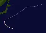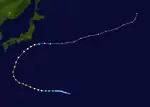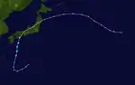 A disturbance close to Japan's coast developed into a tropical depression on August 22, and became a tropical storm 6 hours later. It managed to achieve a minimum central pressure of 999 mbar before it struck the southeastern portion of Japan. It weakened to a tropical depression shortly before landfall though, and became extratropical the next day. But its extratropical remnants continued to move north-northeast, then northeast, and then east-northeast until it dissipated on August 27.